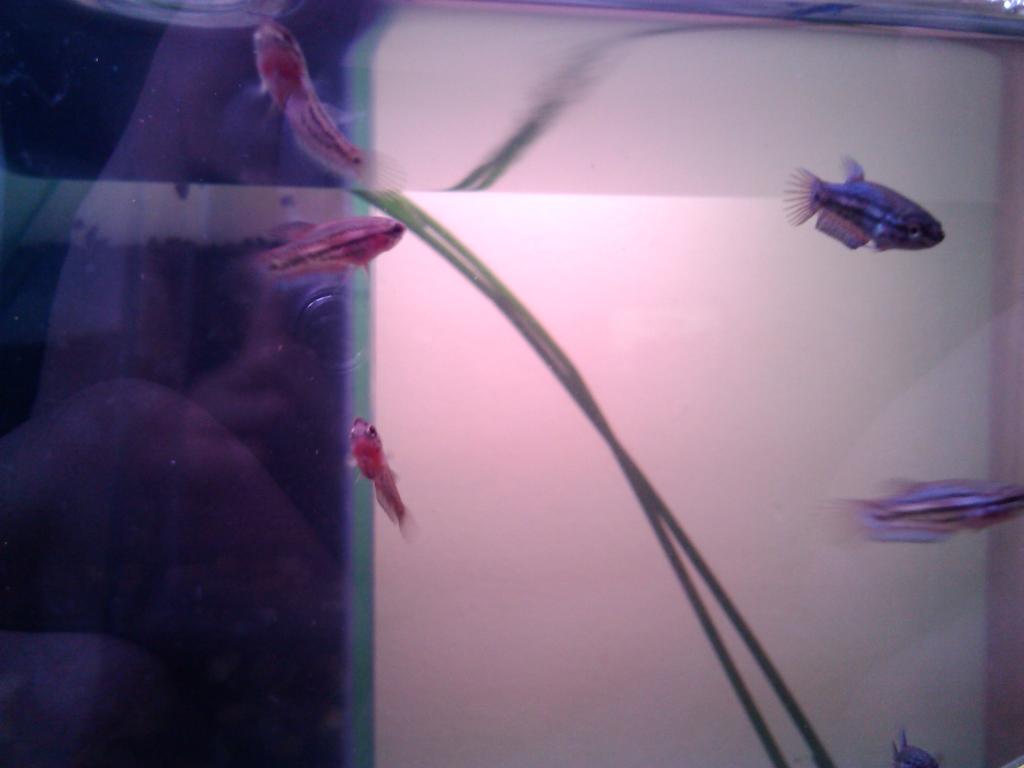 Pa ne mogu da verujem, pocelo je. Videli ste slike od pre par dana, tek sto su prestali da lice na punoglavce, malo dobili boju i evo ih vec se sepure i pocinju carke. Polako spremam tegle... I pazi sta se desava. Jutros ih nahranio, pre toga svi zivi i zdravi. Reko jedan se gusi, mora da je progutao veci komadic. Lezi mu rep na dnu, kad sad vidim pliva neka nit po vodi, ne kapiram da je to ventralno peraje. Malog sam vec izdvojio u teglicu sa manje vode da lakse dodje do povrsinue i sad pogledam, da li njemu fali peraje. Odgovor pozitivan...